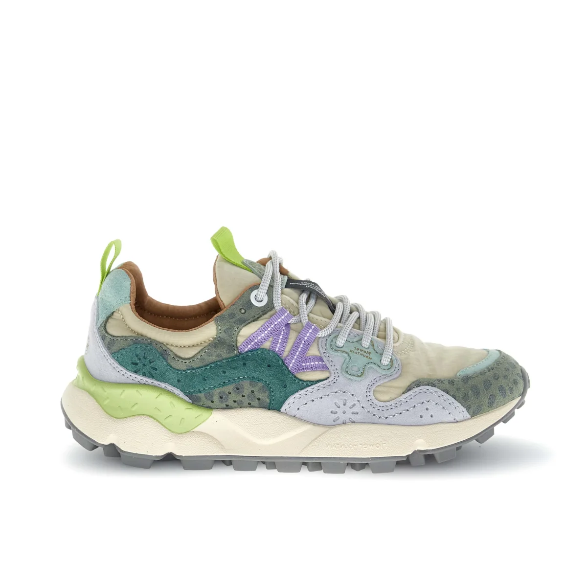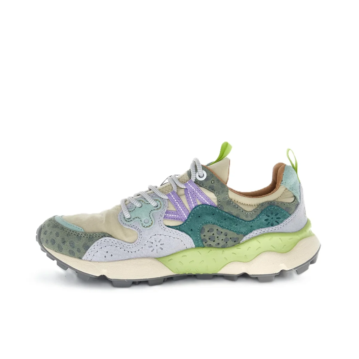 YAMANO 3 Sneaker in tessuto tecnico e suede, con occhielli rinforzati, lacci trekking, soletta interna in sughero anatomica e antibatterica. Suola in gomma ultraleggera con battistrada dentellato. Dettagli:– Tomaia in suede e tessuto tecnico– Motivo con fantasia a fiori sulla tomaia– Linguetta logata con tirante in tessuto– Chiusura con lacci– Occhielli dalla forma sagomata– Iconico […]